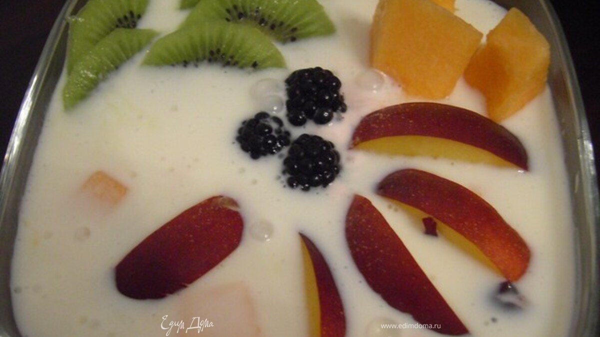 - Шаг 1Мороженое кладем в стаканчик (или как я в маленкие чашечки) пару шариков . Нарезаем разные фрукты(я брала нектарин, виноград, вишню, дыню, киви, банан и кладем на мороженое и заливаем йогуртом. Украшаем и наслаждаемся вкуснятиной)))))!!