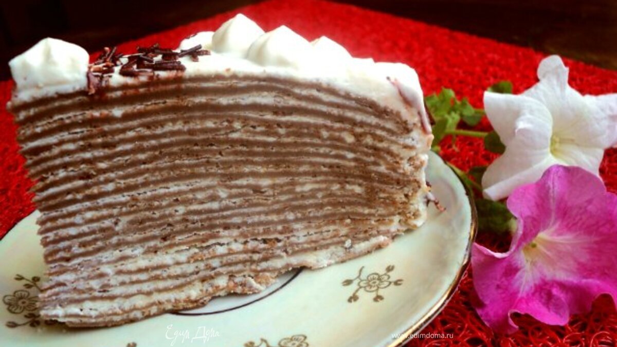 Перемазать блинчики кремом, сложив друг на друга. Поставить торт в холодильник на 3 часа или лучше на ночь. - Шаг 8