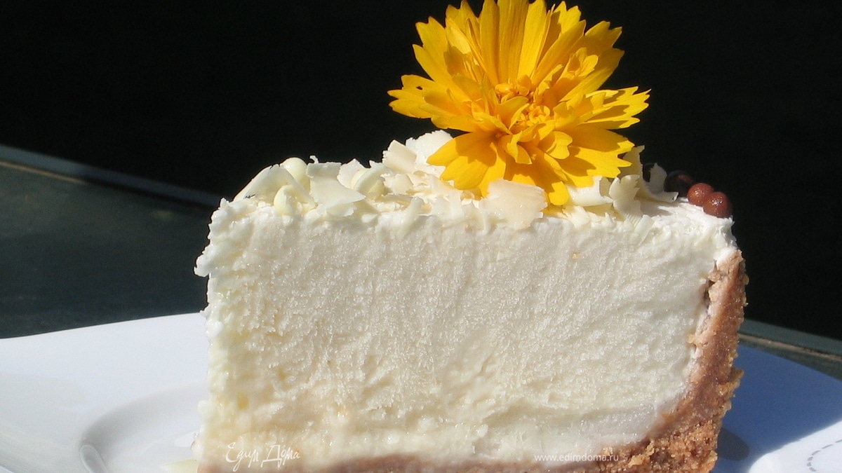 Перед подачей необходимо извлечь торт из формы: убрать бортики, дно и снять пленку. Украсить торт по своему усмотрению. Я выложила по кругу шоколадные шарики, кроме этого раскидала их по поверхности торта и посыпала стружкой белого шоколада. Перед тем, как разрезать торт, необходимо дать ему время отойти от заморозки (минут 15). Резать горячим ножом (можно смочить его в кипятке). - Шаг 11
