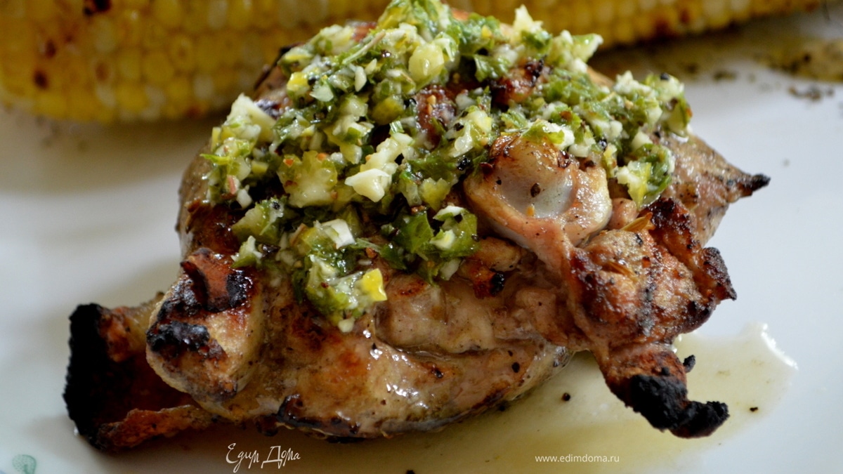 Куриные грудки, бедрышки с соусом из базилика