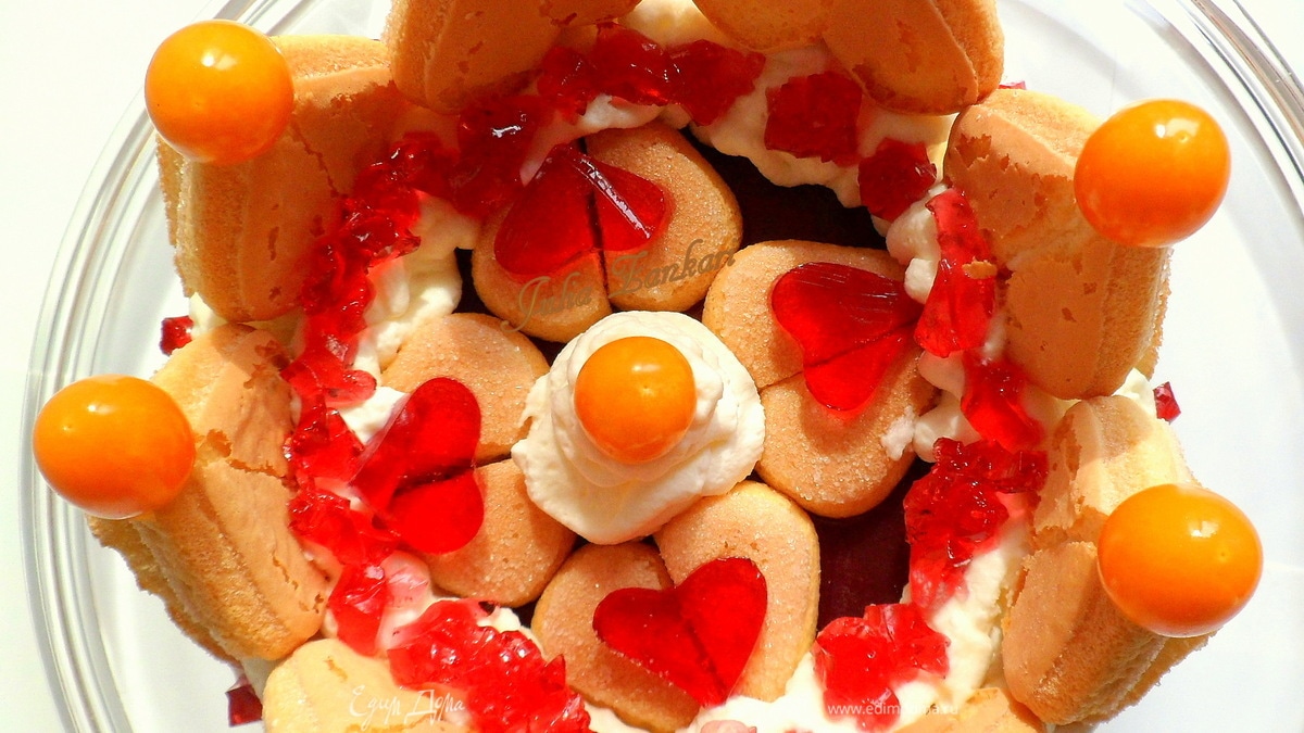 У физалиса делаем углубление, чтобы хорошо сидел на сердечках. - Шаг 9Отправляем торт в холод на пару часов, потом наслаждаемся.