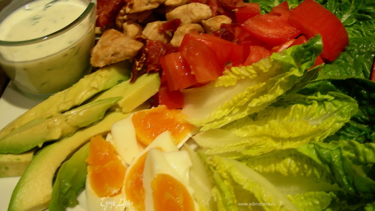 Американский салат "Кобб" с курицей, яйцом, авокадо и беконом (заправка на основе пахты)
