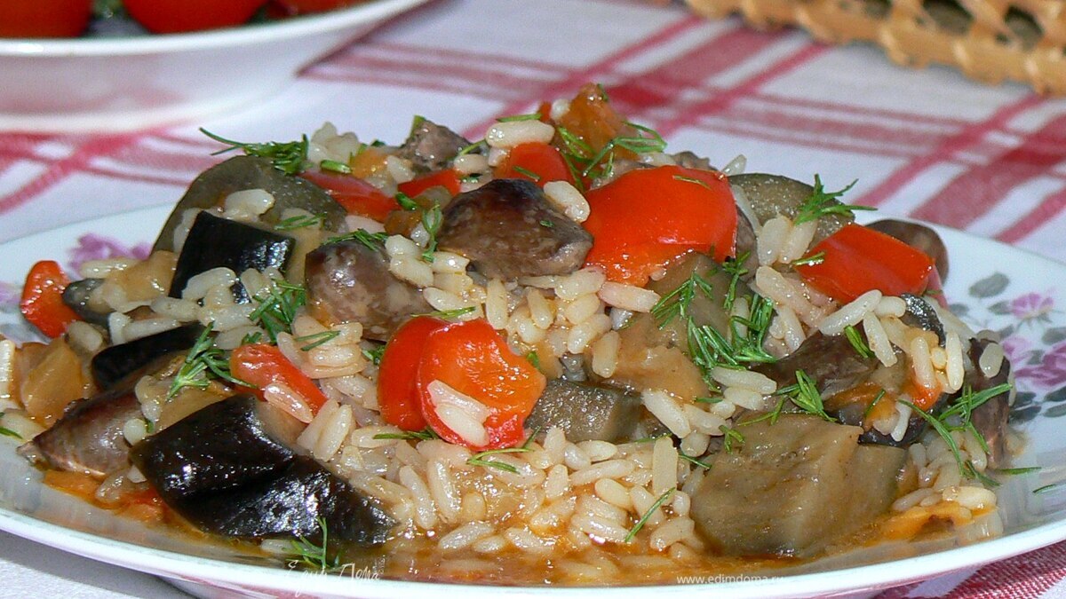 Затем налить горячей воды, чтобы она покрывала рис на 1,5-2 см, если нужно - досолить. Перемешать, накрыть крышкой и тушить на маленьком огне минут 20-25. Затем выключить плиту и оставить еще на 10 минут постоять под крышкой. - Шаг 7