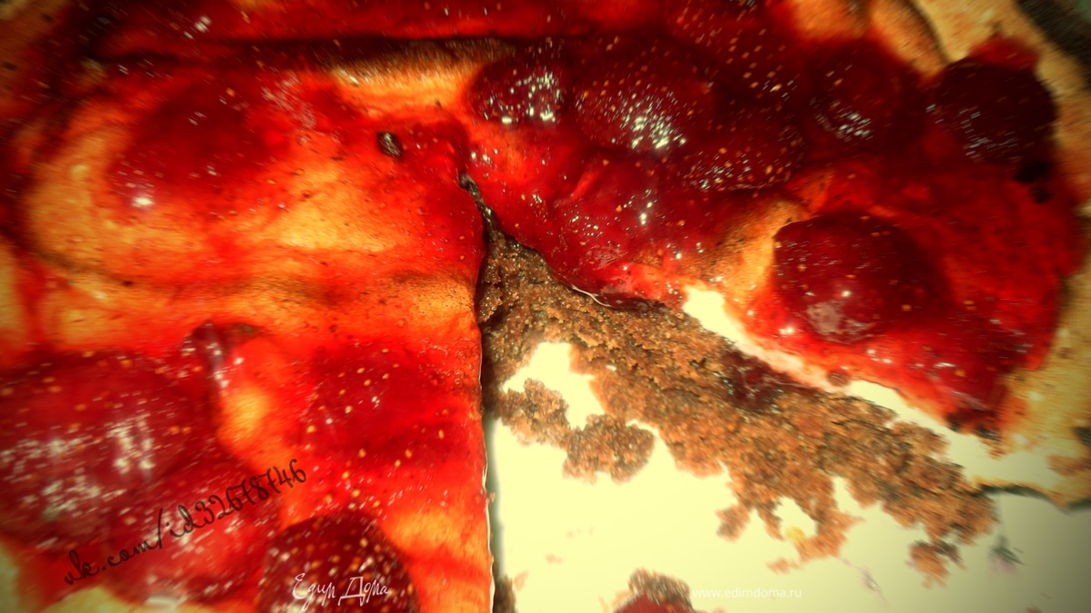 Когда остынет, сверху выложите варенье (у меня было клубничное). Поставьте в холодильник на 2–3 часа! Приятного аппетита!
