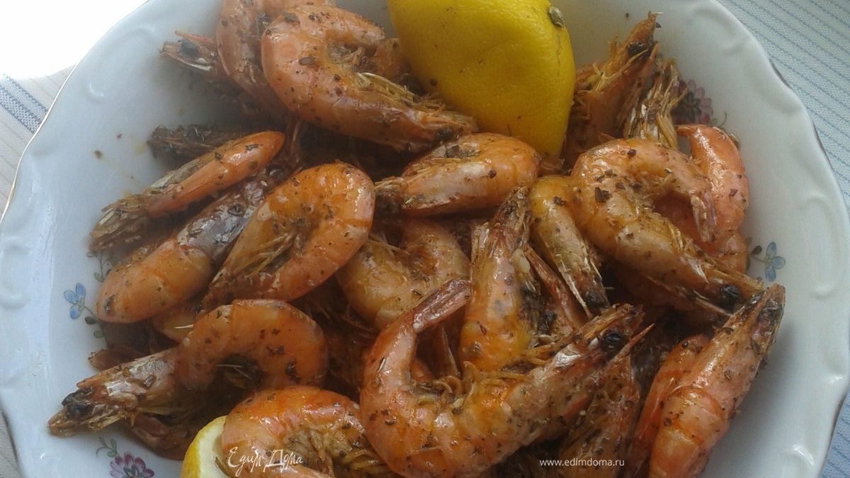 Добавить все специи и соль. Еще раз хорошо перемешать, убрать с огня и выдавить сок лимона в горячие креветки. Выложить на блюдо вместе с соком образовавшимся при жарке. Половинки лимона выдавленные положить на блюдо с креветками - они добавят аромата. Блюдо получается очень острое снаружи и сладковатое внутри. Вкусно очень мужу! (с кружечкой холодненького пива особенно)