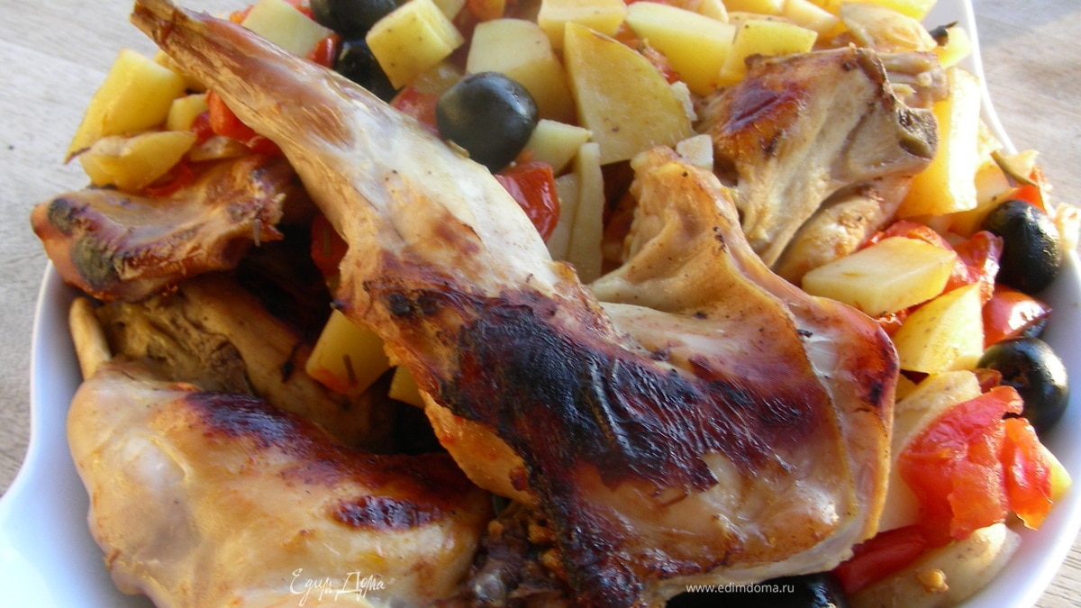 Кролик по-итальянски с оливками, базиликом и розмарином