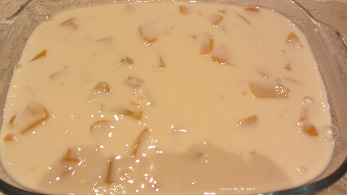 Сироп из фруктов слить в глубокую тарелку. Крекер опустить в сироп не надолго. - Шаг 1