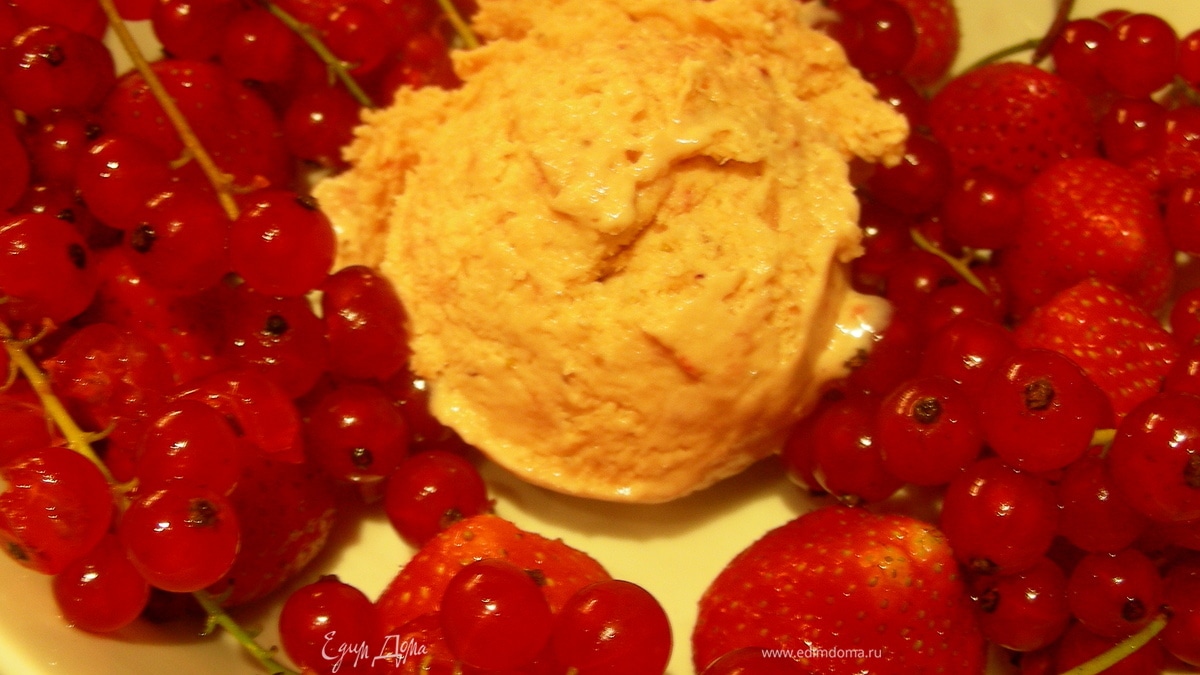 Сливочное мороженое с клубникой, белым шоколадом и апельсиновым ликером куантро