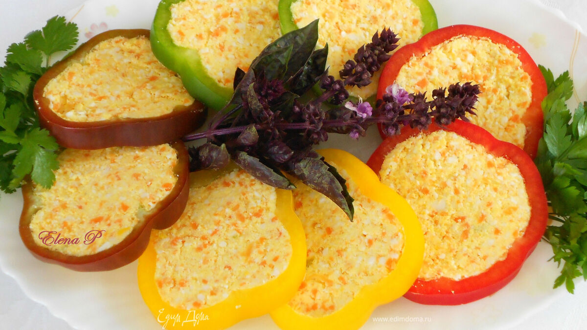 Нарезанные перцы до подачи на стол держите в холодильнике под плёнкой, иначе начинка размягчится и будет неудобно брать их с общего блюда.