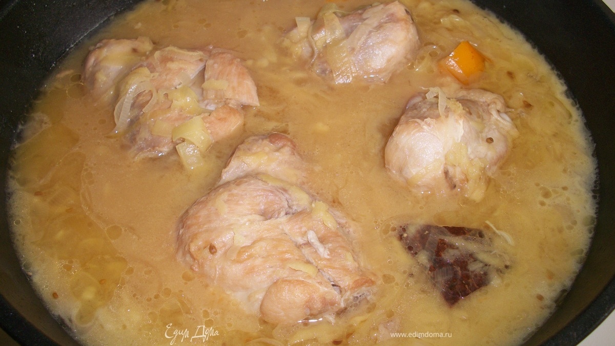 - Подготовка-окорочка очистить от кожизы,порезать на 2-3 части,посолить и немного обжарить В это время нашинковать лук-поррей,натереть на терке имбирь,все смешать в миске,заправить соевым соусом (по вкусу.кому как) . добавить сок и специи Когда наши окорочка уже немного подрумянились,залить все нашим соусом. Тушить на маленьком огне где-то 30мин,до готовности.