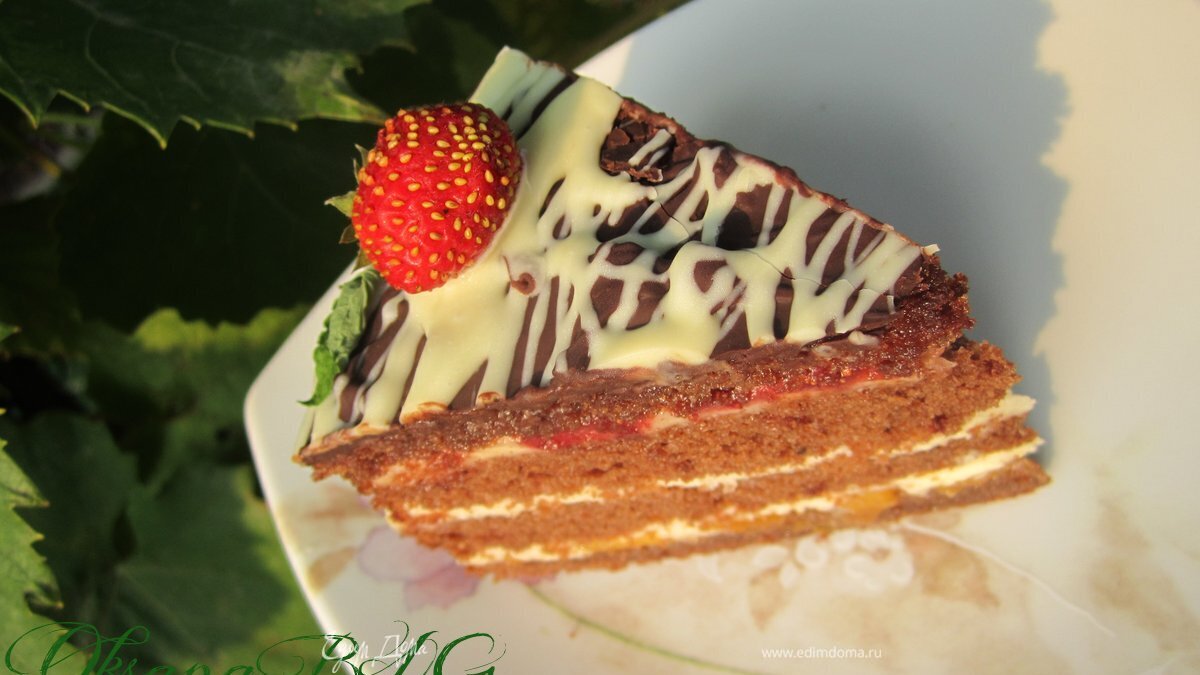 Украсить по желанию. Залить шоколадной глазурью или растопленным шоколадом. Украсить клубникой. - Шаг 12