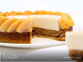 - ПодготовкаЖелтки соединить с яйцами и сахарной пудрой, взбить до консистенции йогурта. В сметану добавить гашеную соду и соединить с яйцами, добавить муку с какао и перемешать. Вылить в форму и выпекать при 180 гр. 10 минут, затем уменьшить до 160 и печь 30 минут. Обобрать виноград, оторвать зеленые хвостики у клубники, персики нарезать крупным кубиком. Суфле: в чашу блендера вложить маскарпоне, сахарную пудру, влить жирные сливки (чуть оставить для растворения желатина) и апельсиновый ликер, взбить массу до однородной воздушной консистенции. Достать форму из духовки (остудить) корж пропитать ликером апельсиновым и затем не вытаскивая его из формы выложить на него фрукты и ягоды голубики. В суфле влить желатин растворенный в горячих сливках, хорошо перемешать, залить его в форму, разровнять и поставить в холодильник. Украшаем растопленным белым шоколадом и каплями черного, веточка мяты и клубничка.