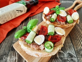 Итак, на булочку выкладываем маринованный кабачок, креветки и пашот. Яйцо слегка надрезаем с одной стороны, чтобы желток немного потек. Сбрызнуть соком лимона. Соль-перец-травки. Вуаля!