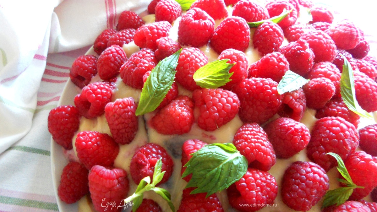 Шоколадный блинный пирог с маскарпоне, белым шоколадом и малиной