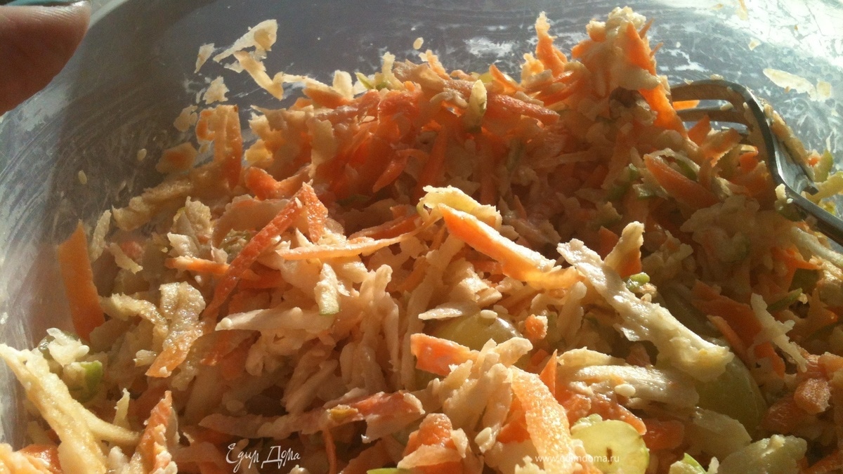 - ПодготовкаНатереть морковь, яблоко, корень сельдерея.