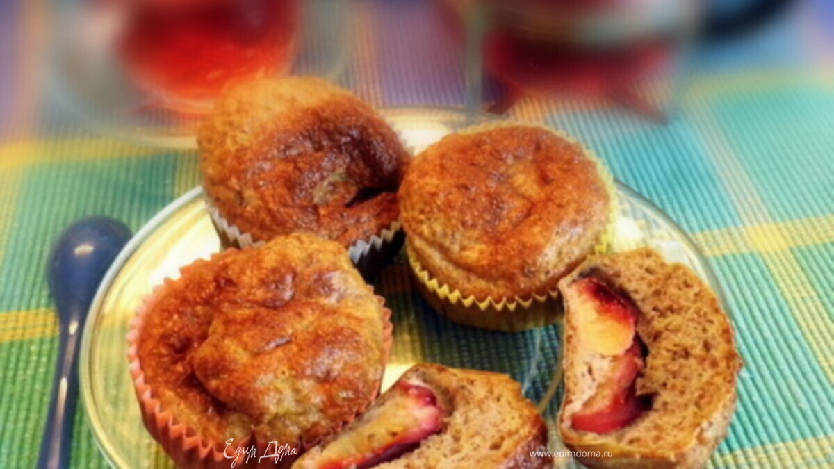 Нашла в Интернете ещё один рецепт из отрубей - это малокалорийные кексики. Чуть-чуть изменила рецепт и добавила свежие сливы. И получились воздушные кексики с запахом ванили и кисло-сладкими сливовыми вкусом. С шиповниковым чаем (завариваю плоды и цветы шиповника) - самое то....