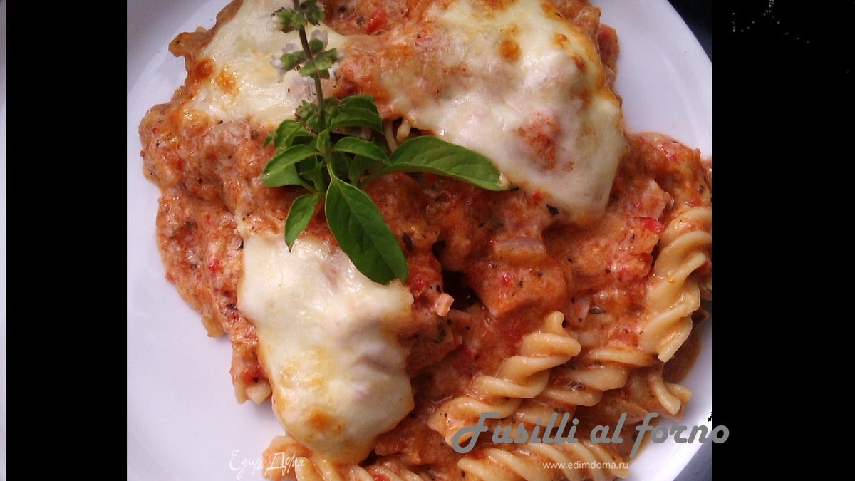 Фузилли аль форно с розовым соусом и тремя видами сыра