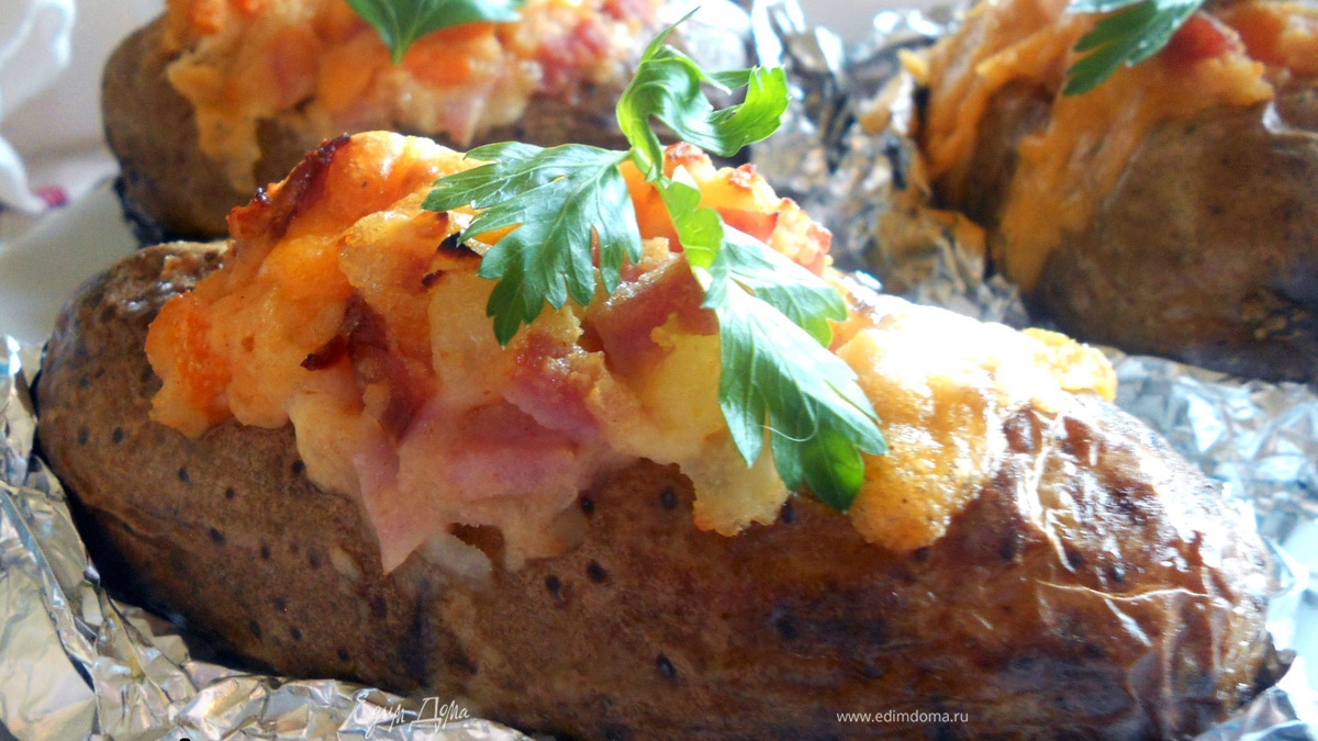 Запеченный картофель, фаршированный ветчиной и чеддером