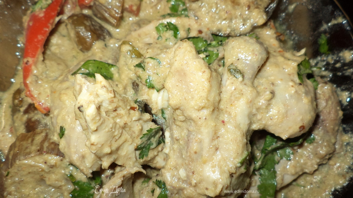 Этот рецепт моих очень близких друзей, корни главы семьи идут из Грузии,хотя там сейчас уже никого не осталось, все переехали в Россию и Краснодарский край,но многим блюдам Грузинской кухни я научилась у Сергея! Я предлагаю не совсем оригинальный рецепт этого блюда,когда у тебя почти диетическое питание,но все-таки хочется побаловать себя чем-нибудь эдаким,приходиться находить свои пропорции!В оригинале курица должна вариться в большом кол-ве специй,а в соусе должно быть больше чеснока и чили,я для себя их постаралась минимизировать,а при варке курицы использовать больше овощей и трав.