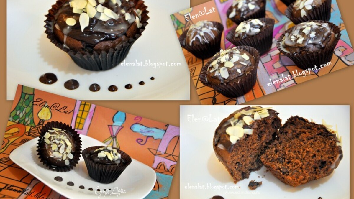 Остудить и покрыть глазурью. Для этого в микроволновке растопить отдельно темный и отдельно белый шоколад. К каждому из видов шоколада добавить по 2 ст.л. молока или сливок. Покрыть остывшие кексы глазурью, чередуя шоколад. Посыпать лепестками миндаля))) - Шаг 3
