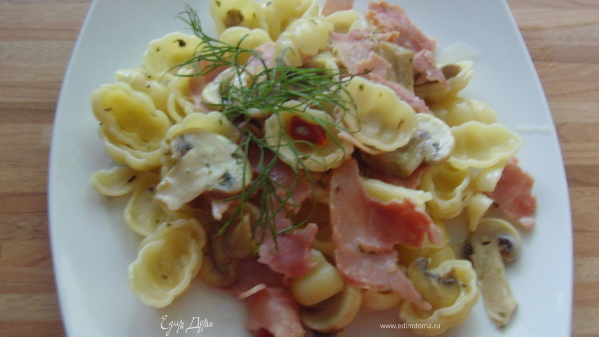 паста с грибами и ветчиной