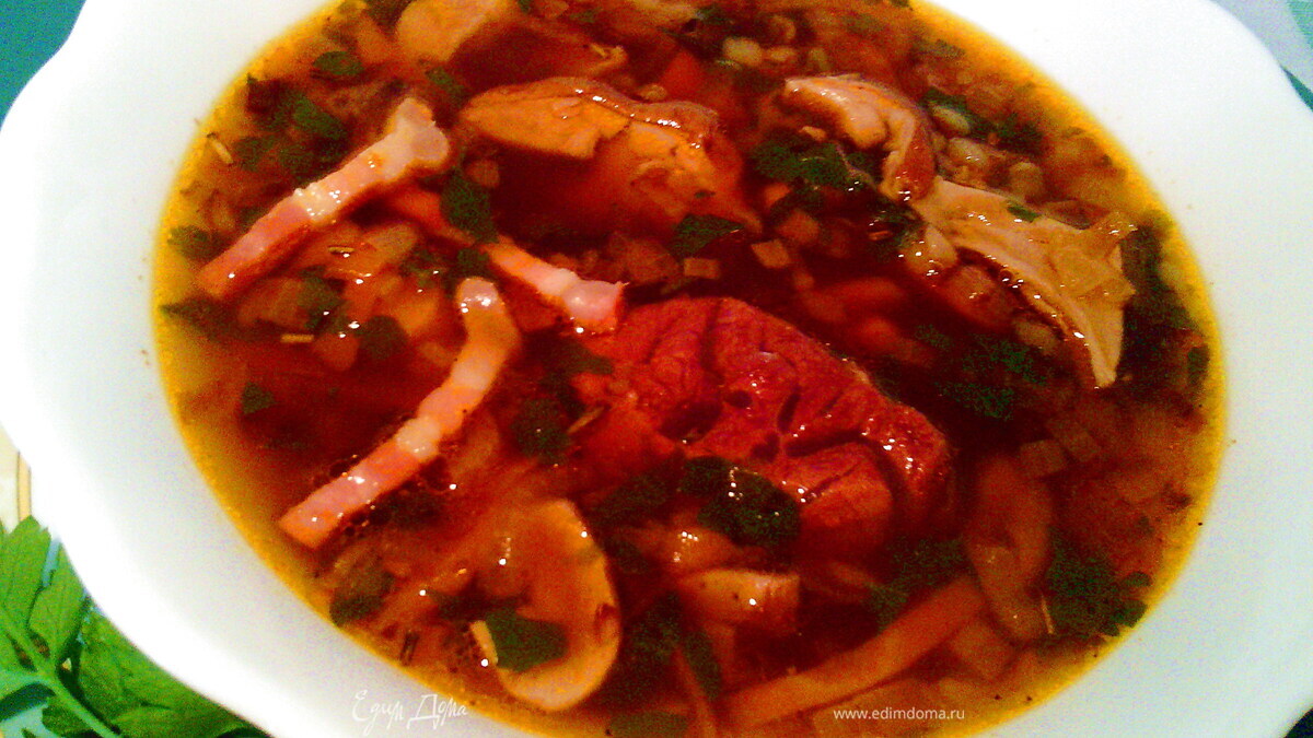 Гречневый суп с белыми грибами и беконом