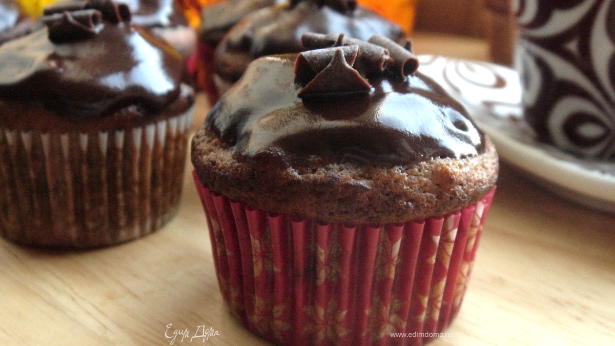 Смазать металлические формы маслом или выложить в формы бумажные капсулы.Распределить тесто по формам,заполняя их на 2/3 объёма. Выпекать при 180*С около 25 минут.Готовые и немного остывшие кексы смазать глазурью,приготовленной из смеси растопленного шоколада (для усиления кофейного вкуса можно использовать шоколад с кофе) и сливочного масла. Украсить шоколадной стружкой,кусочками замороженных бананов и т.д. Приятного аппетита!