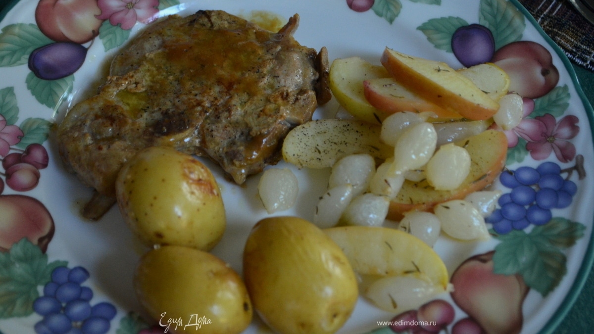 Cвиные отбивные с яблоками и луком