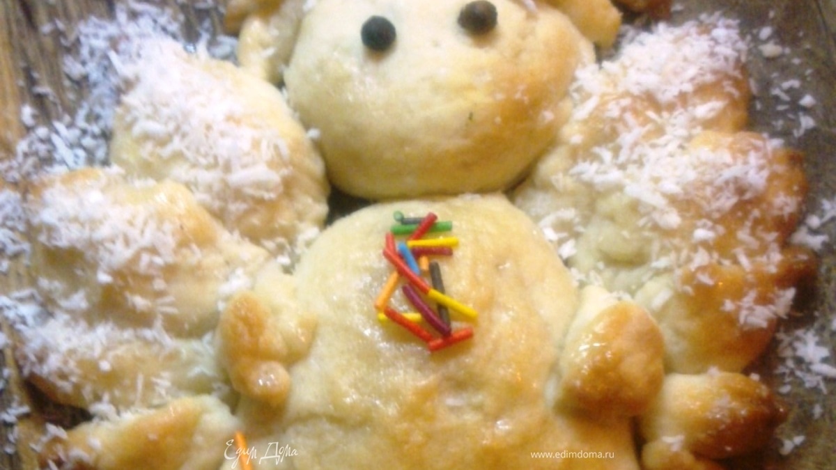По скольку у меня в семье все уже взрослые, то я позволила себе смазать печенюшного ангела медом с коньяком. В качестве украшения использовала кокосовую стружку для крыльев и нимба, а яркую разноцветную посыпку для украшения рубашки. - Шаг 6Рецептом осталась доволна - рекомендую.