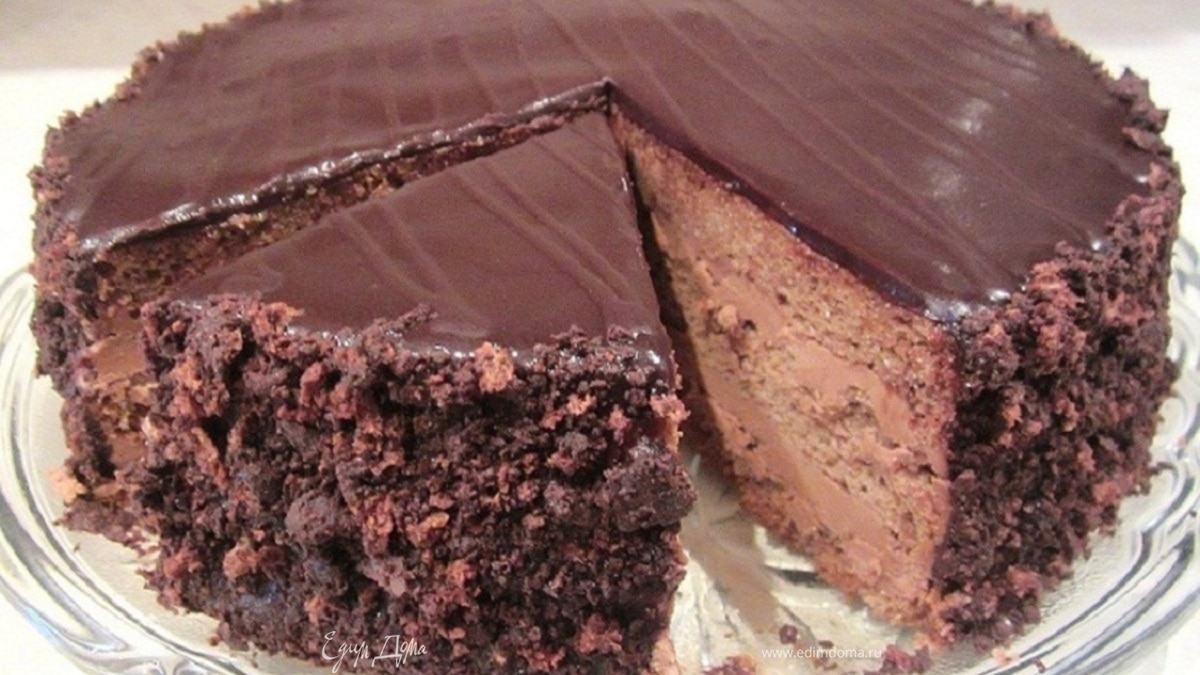 Верхушку смазать подогретым абрикосовым джемом без ягод, дать полностью остыть(в холодильнике застыть джему0. Полить шоколадной глазурью( 100 грамм сахара, 100 грамм воды, 200 грамм черного шоколада), все уварить, помешивая, пока шоколад слегка не загустеет) Поставить торт в холодильник на несколько часов.Приятного чаепития.