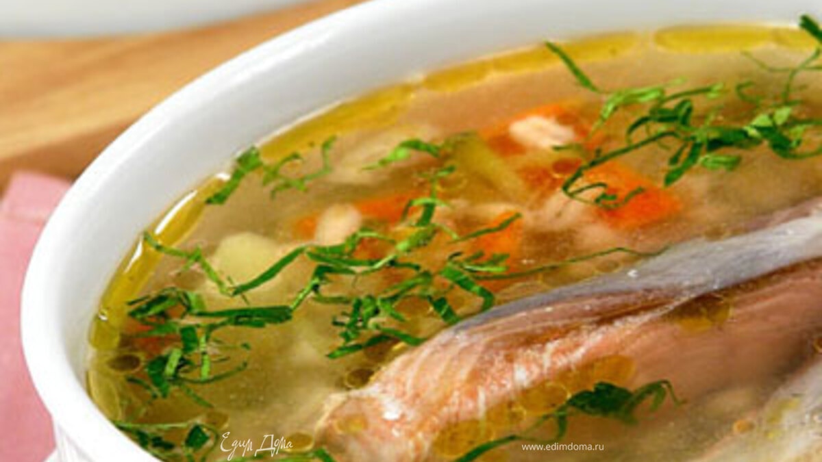 - Шаг 11. Картофель нарежьте ломтиками, морковь - дольками, лук - полукольцами. 2. Лук и морковь соедините и спассеруйте на масле. 3. Огурцы нарежьте соломкой, припускайте в небольшом количестве воды 15 минут. 4. Рыбу нарежьте кускочками. 5. Перловую крупу залейте холодной водой, варите 15 минут, затем отвар слейте, вновь залейте водой и варите до готовности. Бульон доведите до кипения, положите картофель, варите 10 минут. Добавьте пассерованые овощи, огурцы, крупу и лавровый лист. 6.При подаче в тарелки уложите по кусочку рыбы, залейте ее супом и посыпьте рубленой зеленью.