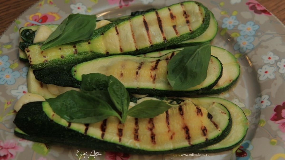 Разогреть сковороду-гриль, смазать полоски цукини оливковым маслом (можно воспользоваться кисточкой) и обжарить с двух сторон. - Шаг 6