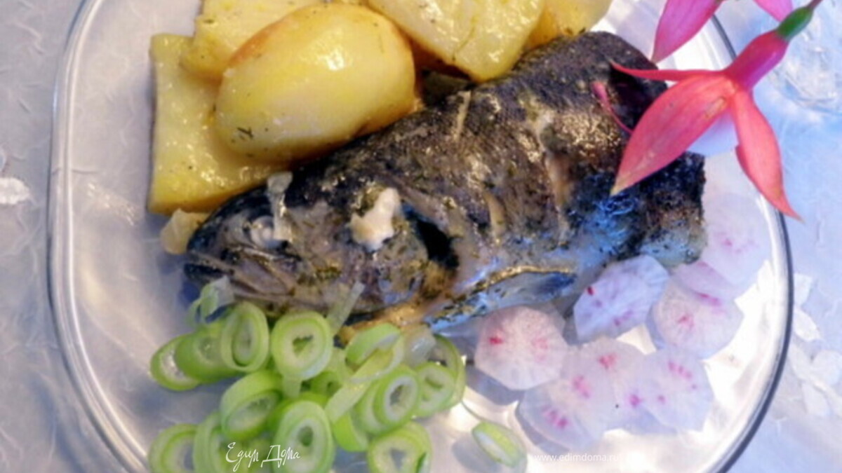 Всё готово, разложить рыбу и картофель порционно и звать едоков. Можно добавить зелёный лук и редис... Приятного аппетита!