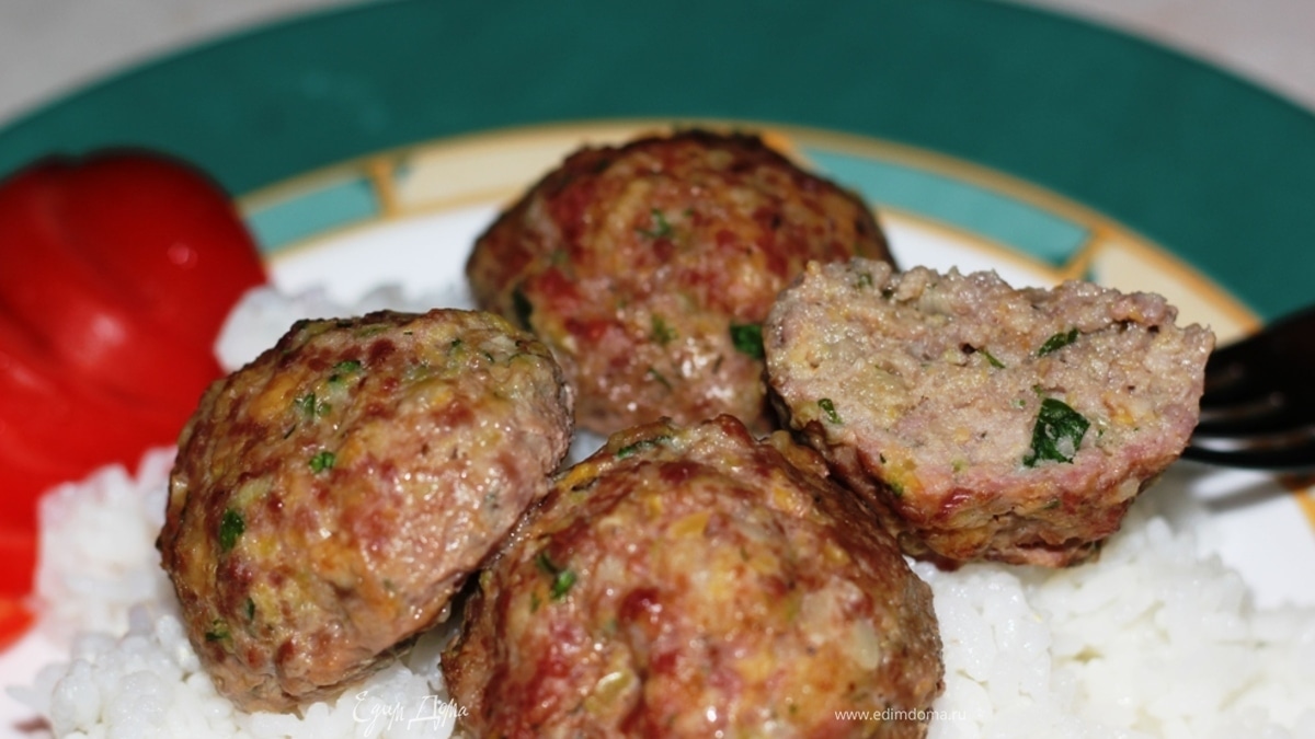 Разогрейте духовку до 210 градусов. Поставьте форму в духовку и через 10 минут уменьшите огонь до 180 градусов. Готовьте тефтели 30-40 минут. Из тефтелей выделится часть жидкости, что не повлияет на их сочность. Можете использовать эту жидкость для приготовления белого или красного соусов. - Шаг 3Важно! В оригинальном рецепте использовалась смесь говядины и свинины (пополам). В этом случае яйца надо добавлять. Обжарьте тефтели, чтобы они лучше держали форму и получили дополнительные вкусовые нотки. В качестве соуса Ольга использовала соус из помидор с обжаренным луком. При этом, соус выливается на тефтели и запекается вместе с ними.