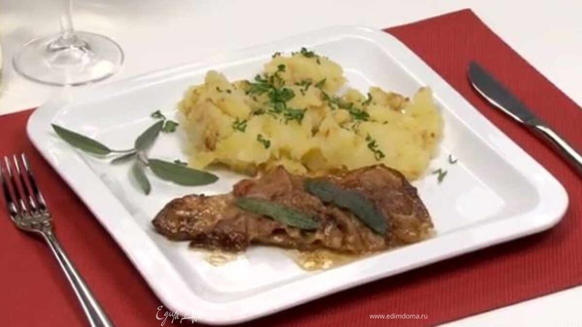 Уберите зубочистки, выложите медальоны на заранее подогретые тарелки, полейте подливой из сковороды и украсьте листиками шалфея. В качестве гарнира к сальтимбокке прекрасно подойдет картофельное пюре.