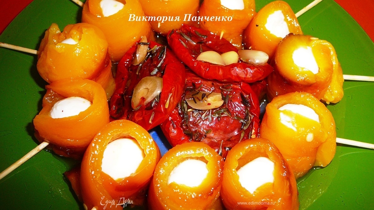 Легкая закуска из болгарского перца и сыра моцарелла