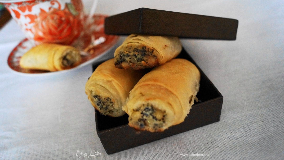 Трубочки из теста фило с маком, кедровыми орешками и пармезаном