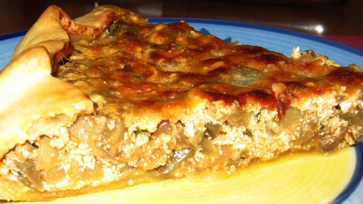 Нежный пирог с баклажанами и творогом