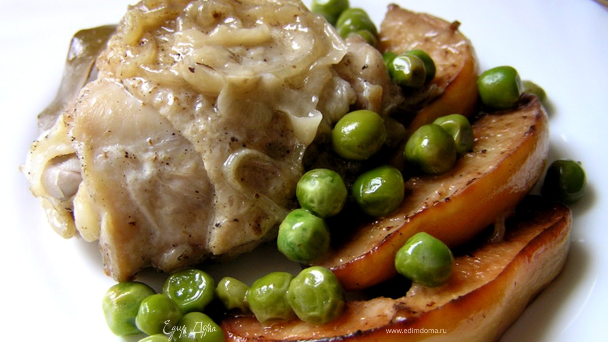 Затем всыпать зеленый горошек, тушить еще 5-7 минут до готовности.