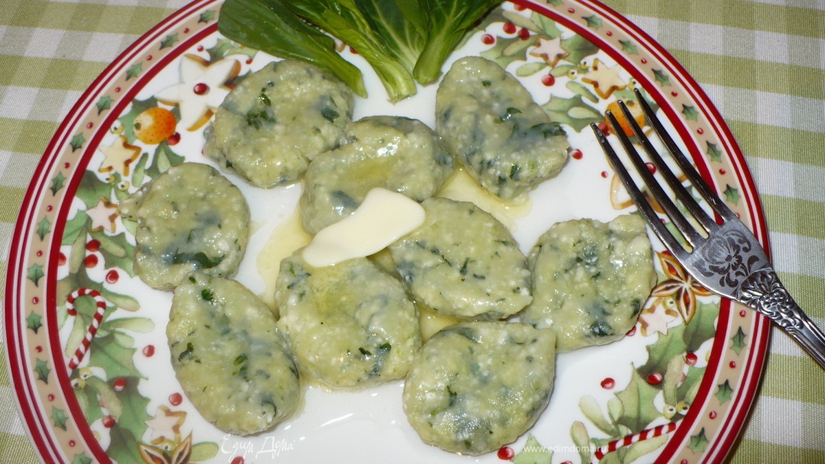 Вкусно с топленым маслом и (или) сметаной. Вообще вкус интересный, даже мужу понравилось (хотя он такое не ест). Советую смело! - Шаг 4Второй вариант (для взрослых). Это положить отварные вареники на на противень (на пергамент бумагу еще лучше). Посыпать сыром и запечь минут 5. Посыпать кедровыми орешками и подавать.
