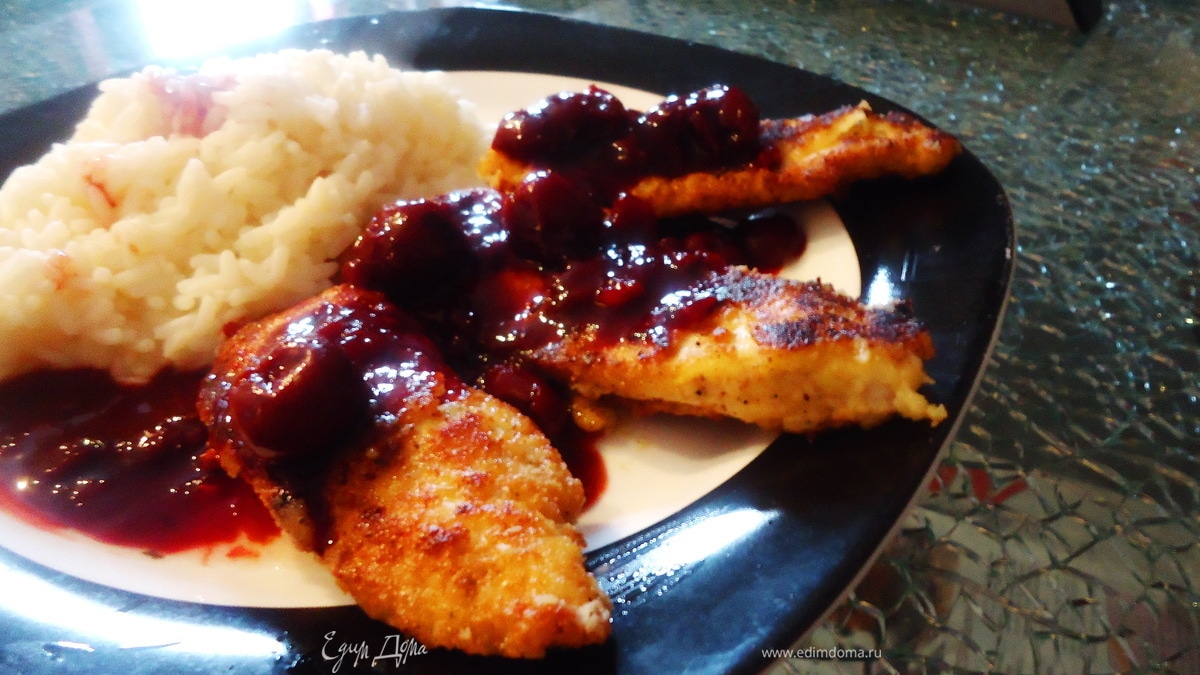 Миндальный шницель "Амаретто" с острым вишневым соусом