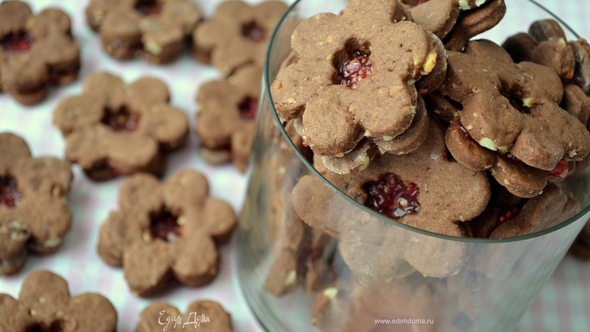 Вкуснейшее шоколадное песочное печенье с малиновым конфитюром