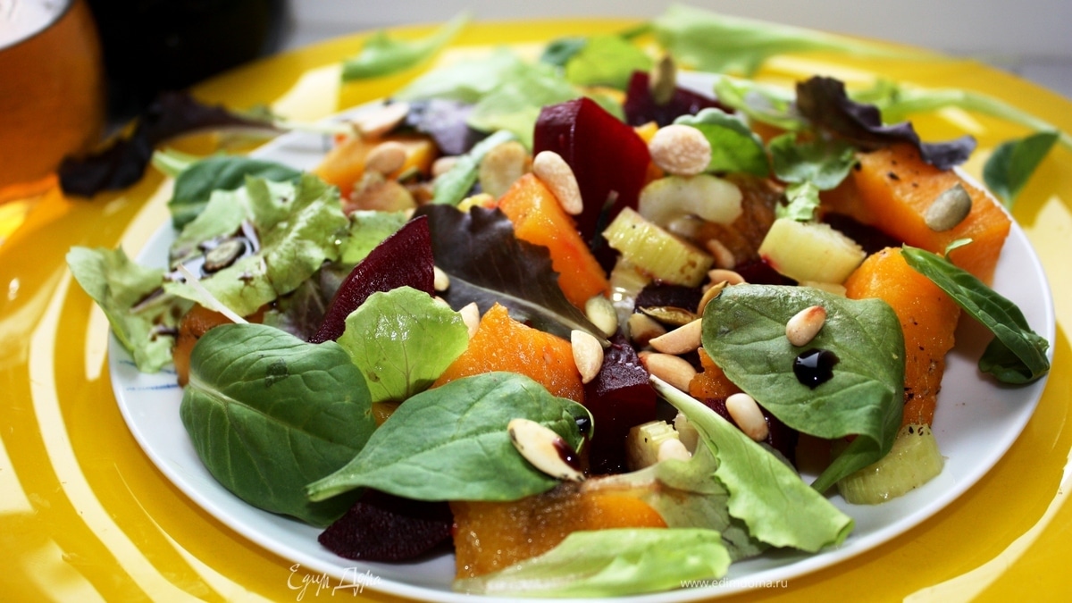Теплый салат с тыквой и свеклой