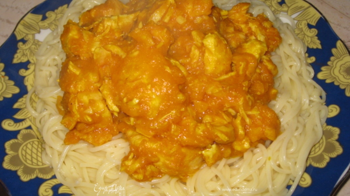 Пока все тушилось я сварила спагетти. Спагетти с курицей и тыквой - необычно, но мне понравилось. Правда думаю, что с рисом будет ещё вкуснее.