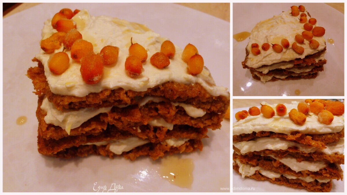 - Шаг 12Перед подачей украшаем по желанию. Я уложила облепиху и полила кленовым сиропом.
