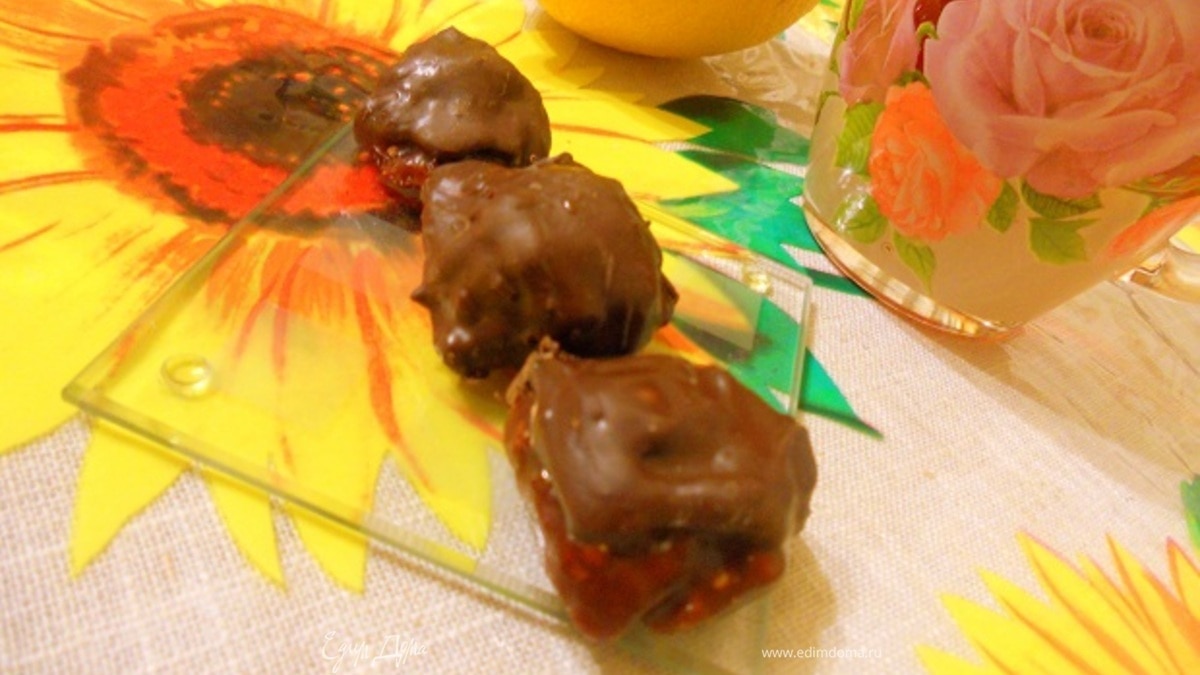 Тем временем растопить шоколад на водяной бане, окунуть каждую конфетку в шоколаде и охладить. Приятного чаепития.