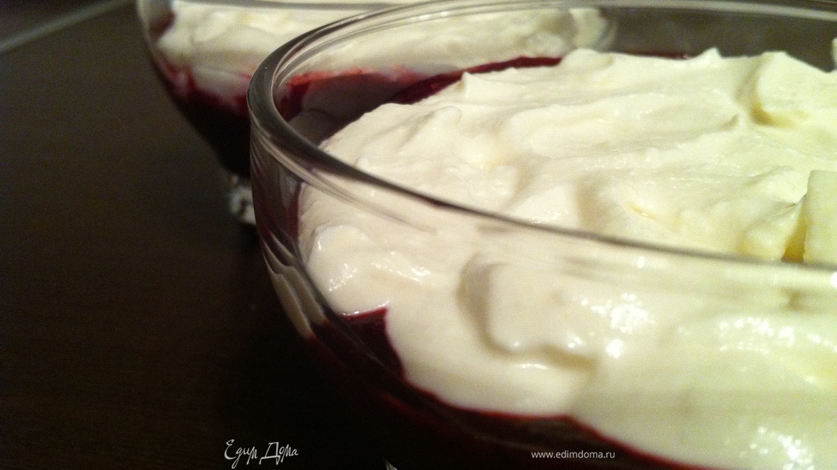 Взбить ягоду с сахаром, выложить в креманку. - Шаг 1Взбить творог с сахаром и сливками, выложить на ягоду.