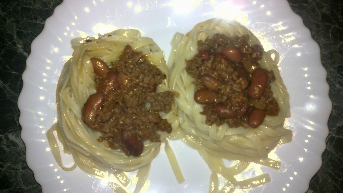 - Шаг 1Лук, шампиньоны, чеснок мелко рубим. На сковороде с растительным маслом обжариваем фарш, добавляем лук, затем шампиньоны, фасоль,чеснок и специи, в конце жарки добавляем сливочное масло.