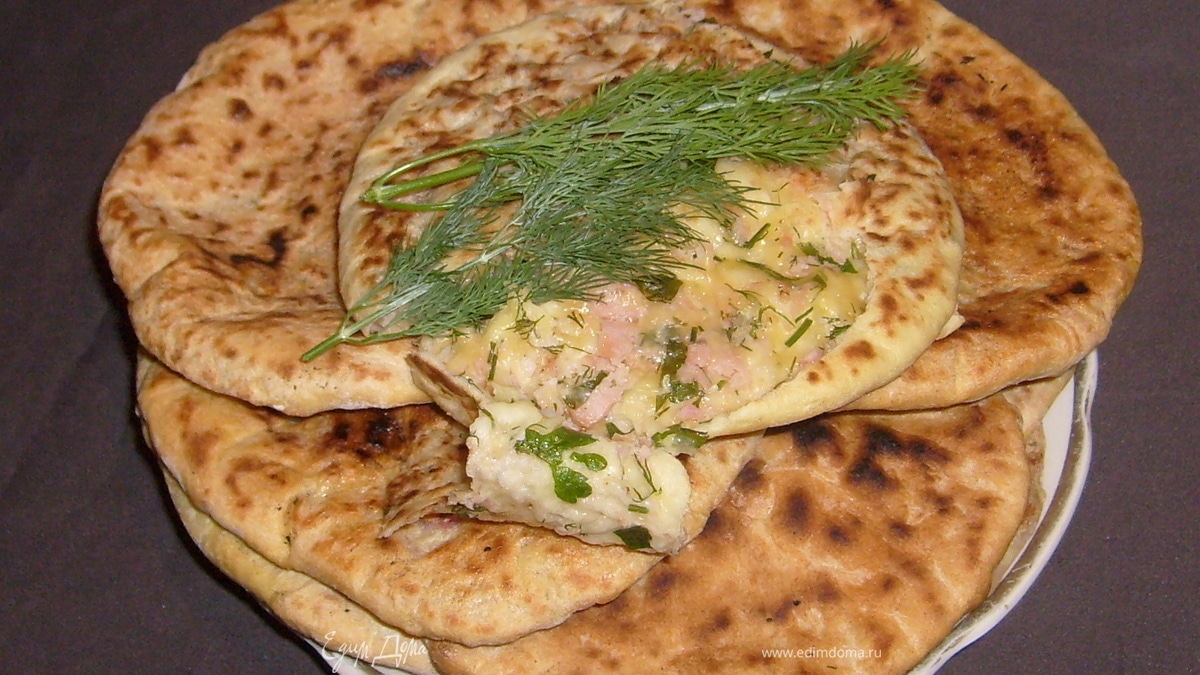 Лепешки с брынзой, сыром, ветчиной и зеленью