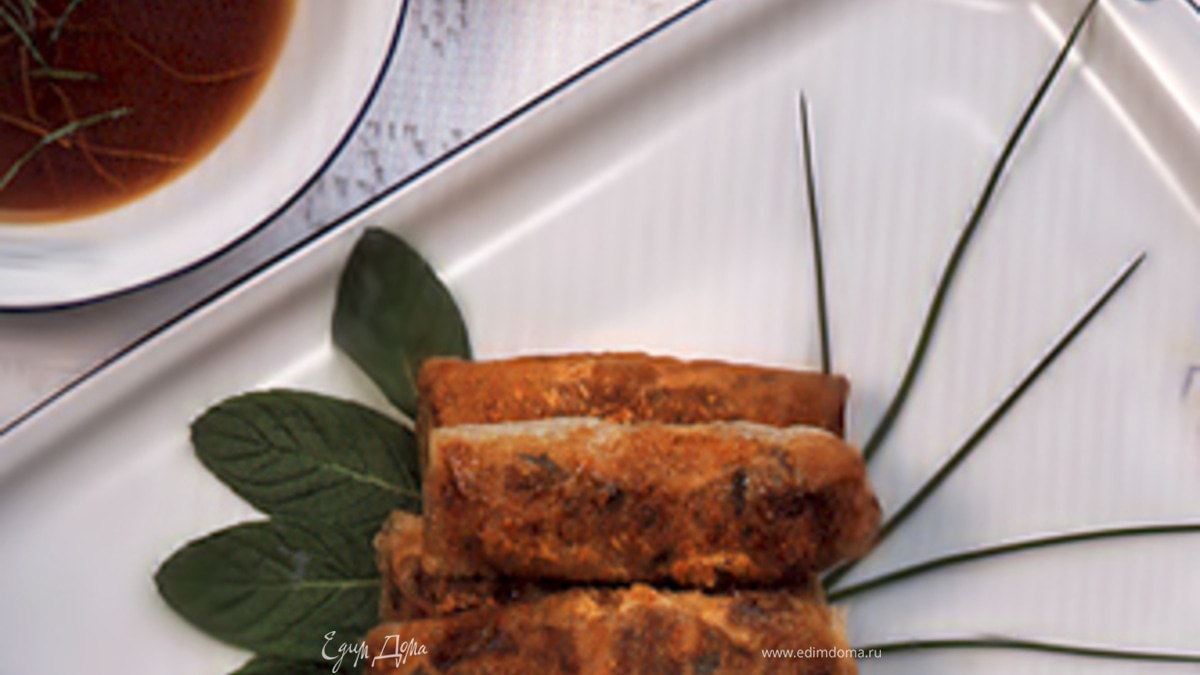 Эти жареные рулетики из рисовой муки начинены ростками сои, китайскими грибами и свининой. Блюдо подают с пикантным рыбным соусом.